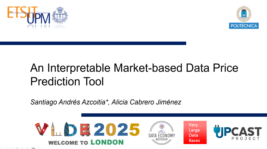 I presented our work, titled «An Interpretable Market-based Data Price Prediction Tool», which outlines its architecture and key technical insights. The data pricing tool provides a market-based price reference for datasets using only their metadata, and aims to facilitate price agreements between data sellers and data consumers. Thanks to Alicia Cabrero Jiménez, who contributed to improving regression models during her Master’s thesis. The proceedings are accessible at the VLDB website.